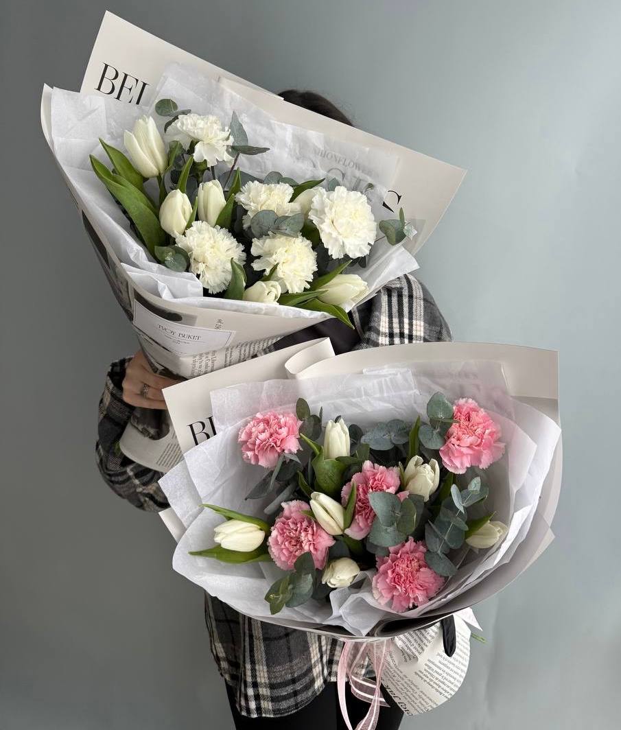 Букет с тюльпанами и диантусами