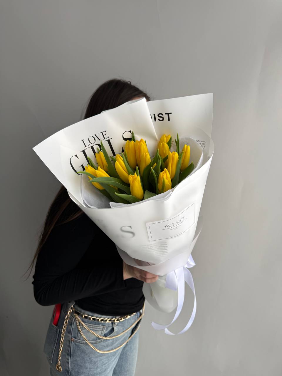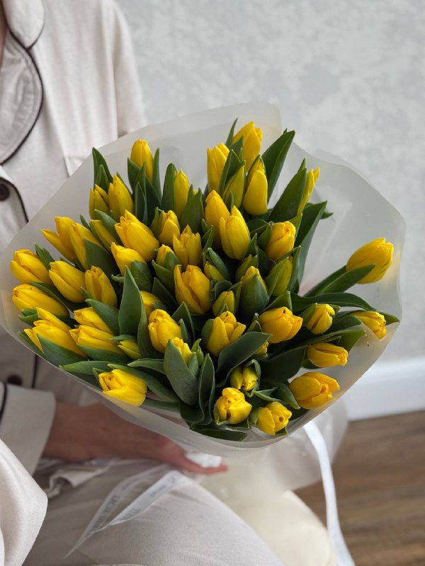 15 желтых тюльпанов в оформлении